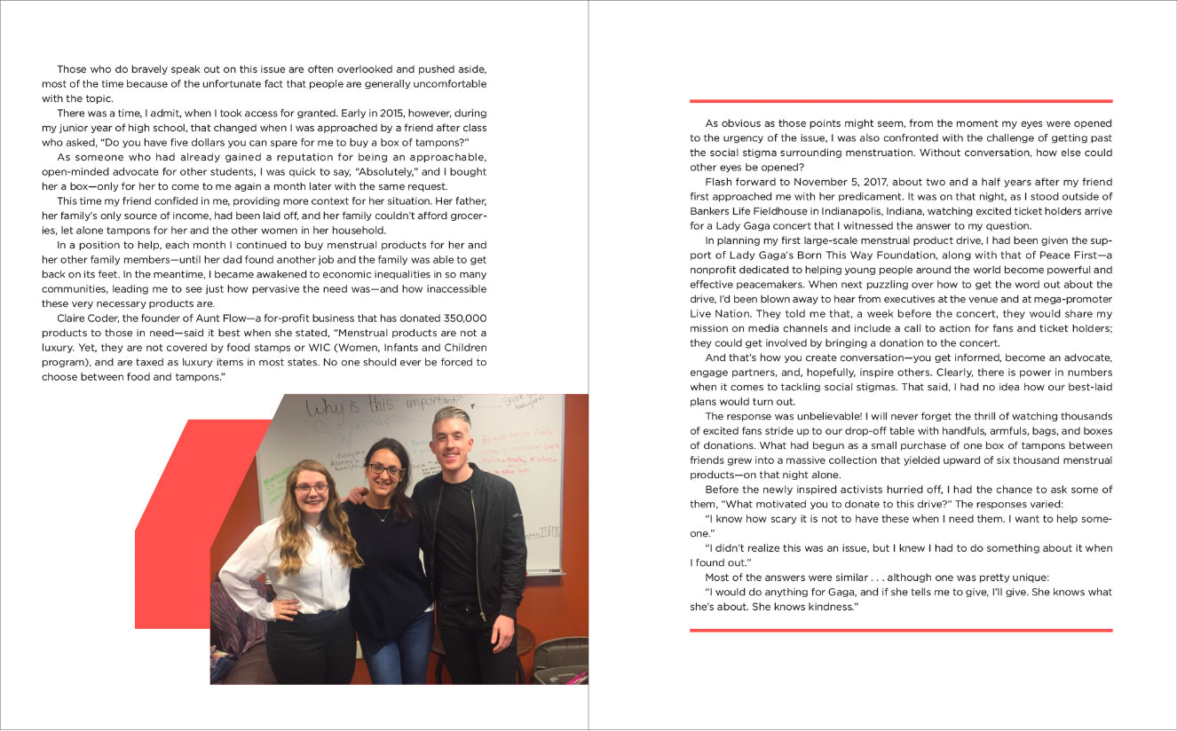 Within these chapters, you’ll meet young changemakers who found their inner strength, who prevailed in the face of bullies, who started their own social movements, who decided to break through the mental health stigma and share how they felt, who created safe spaces for LGBTQ+ youth, and who have embraced kindness with every fiber of their being by helping others without the expectation of anything in return.