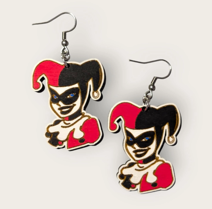 Harley Quinn Hand Painted Wood Dangle Earrings