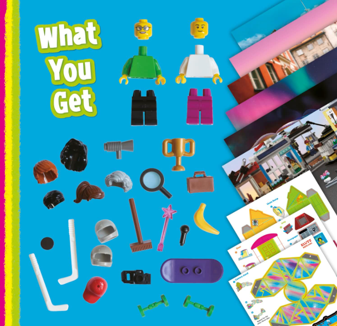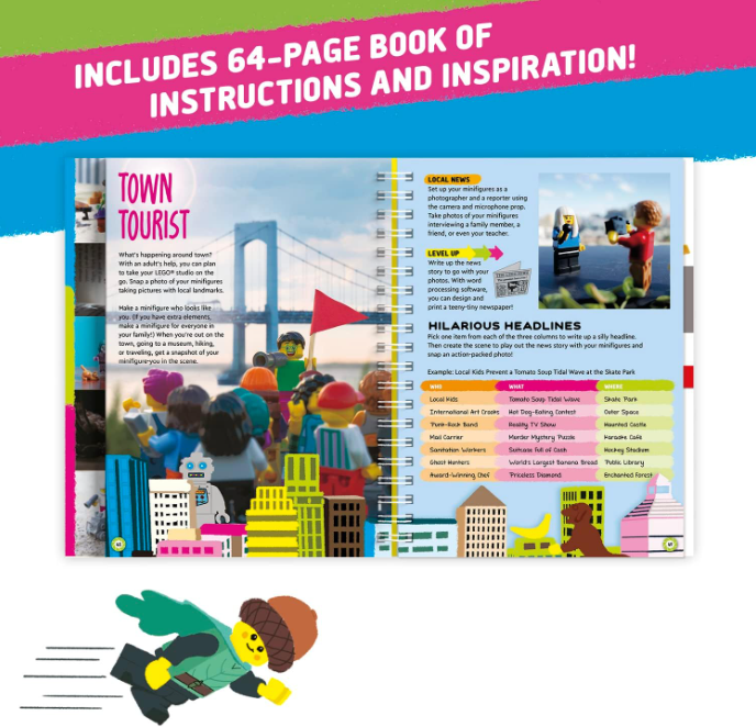 - Includes two LEGO minifigures, LEGO props, printed backgrounds and punch-outs, plus a full-color 64-page book with stunning photo inspiration and how-to