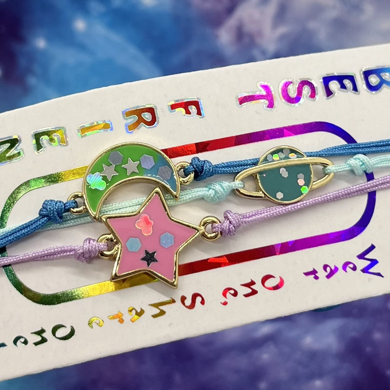 Comes with one Moon bracelet, one star bracelet, and one Saturn bracelet.