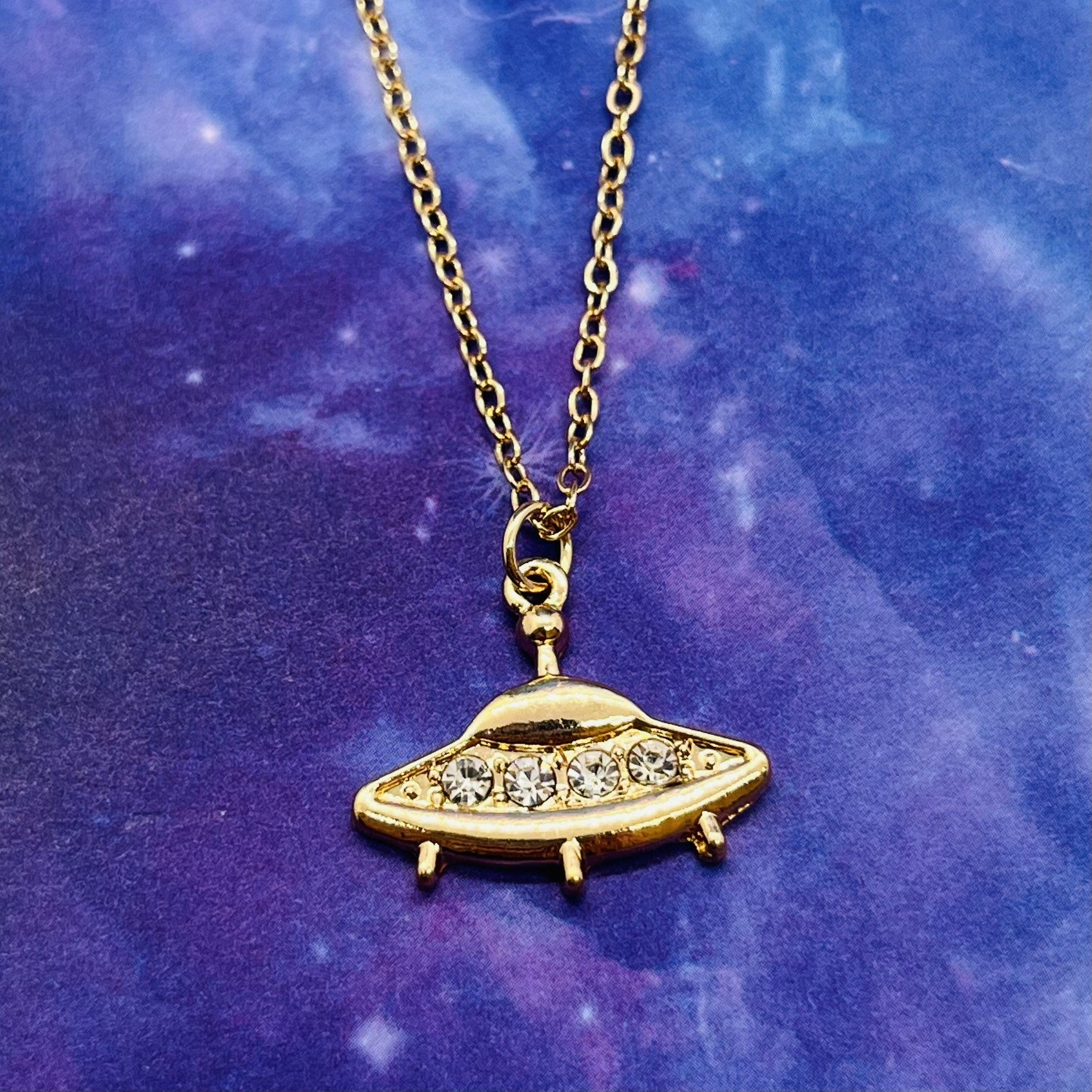 Lovely, dainty, and whimsical - snag this rhinestone UFO pendant necklace today!